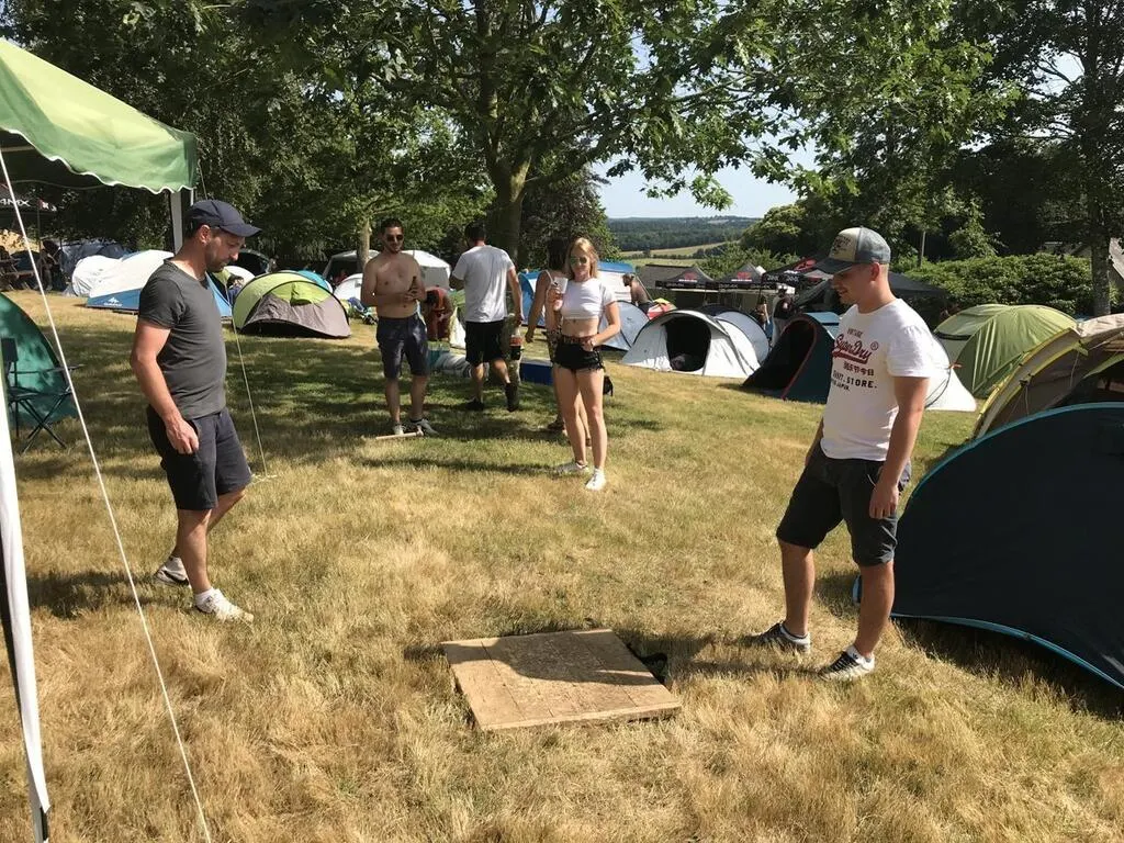 Dudu, Hugo, Charlotte et Toto sont arrivés dès l’ouverture du camping des Bichoiseries, ce vendredi 23 juin 2023 et ont sorti directement le jeu de palets. © Ouest-France