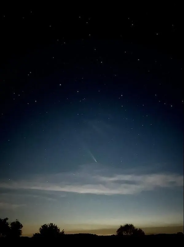 La comète Tsuchinshan-ATLAS au-dessus de la Normandie. Cette photo a été prise vers 20 h 40, vendredi 18 octobre 2024, près de Gacé, dans l’Orne. © Ouest-France