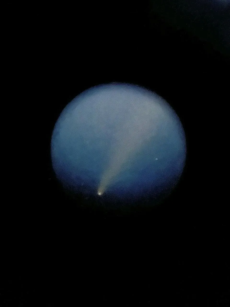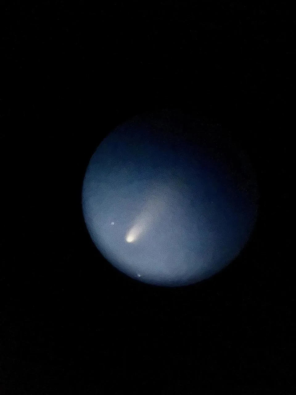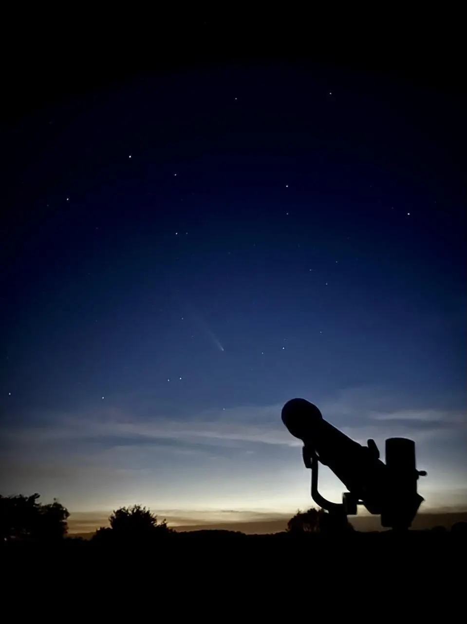 La comète Tsuchinshan-ATLAS photographiée à travers une lunette astronomique, en début de soirée de vendredi 18 octobre 2024, près de Gacé, dans l’Orne. Ouest-France