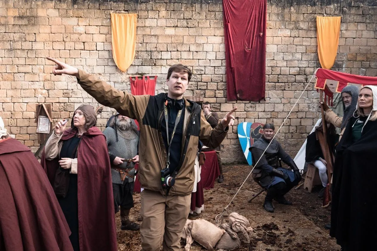 Le réalisateur Maxime Chefdeville dirige au château de Caen (Calvados) le tournage du dernier épisode de la saison 2 de la série « Anachroniks ». © Justin Picaud / Ouest-France