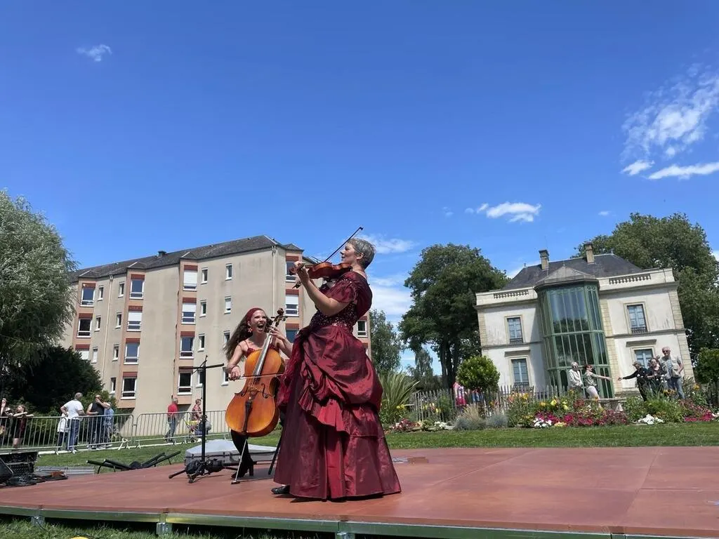La troupe Zique à tout bout d’champ, venue du Pas-de-Calais présentait ses spectacles Désaccords parfaits et Les altérations accidentelles vendredi 14 juillet 2023, à 14 h 30 et 18 h 30 au plan d’eau de la Noë. Pour ces prestations burlesques, Audrey Castagné et Noémie Capron interprètent Aline Rocket et Barbara Gilberte, deux cantatrices que tout oppose, liées malgré tout par la musique. L’une ne badine pas avec la fermeté et l’autre se laisse facilement déconcentrer face à celle qu’elle admire.