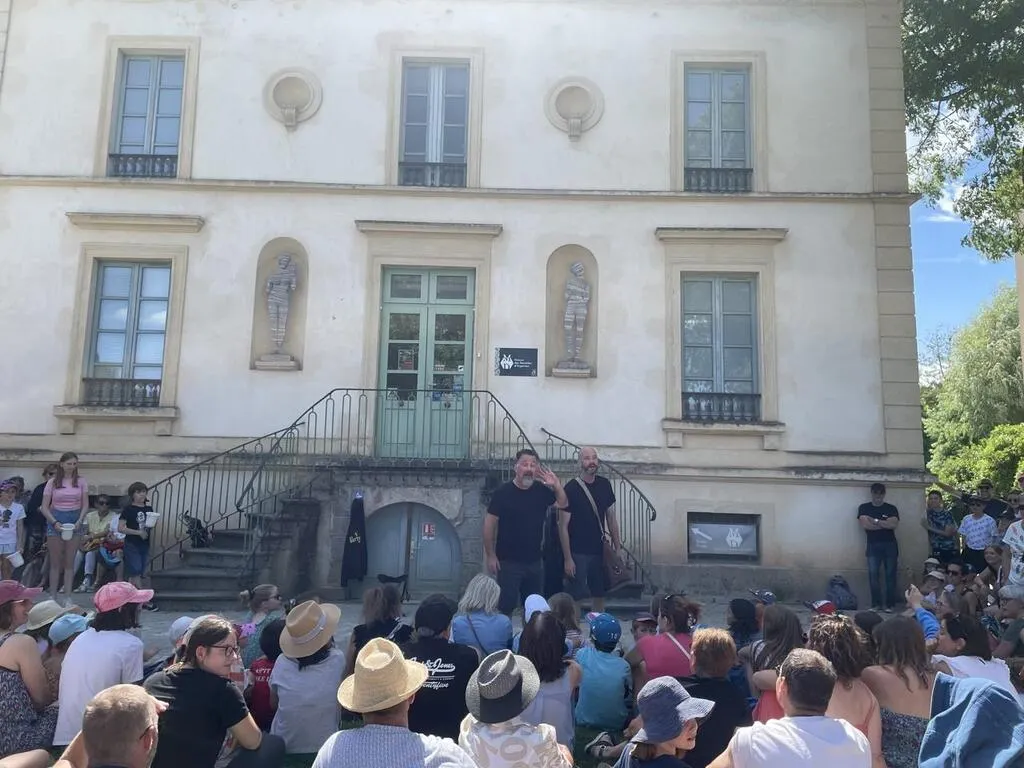 Les Arts j’entends, c’est aussi l’occasion de célébrer un des points forts des arts de rue : la proximité avec le public. Pour cela, déambulations et prestations participatives sont au programme. Vendredi 14 juillet à 16 h, les Batteurs de pavés ont fait leur arrivée devant la Maison des dentelles pour une revisite de Germinal d’Émile Zola.