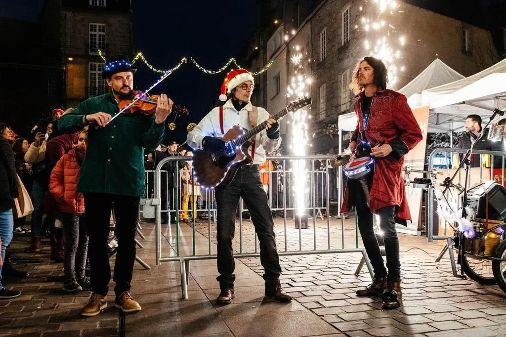 Un trio de musiciens a animé l’inauguration en reprenant des classiques des musiques de Noël. © Ouest-France