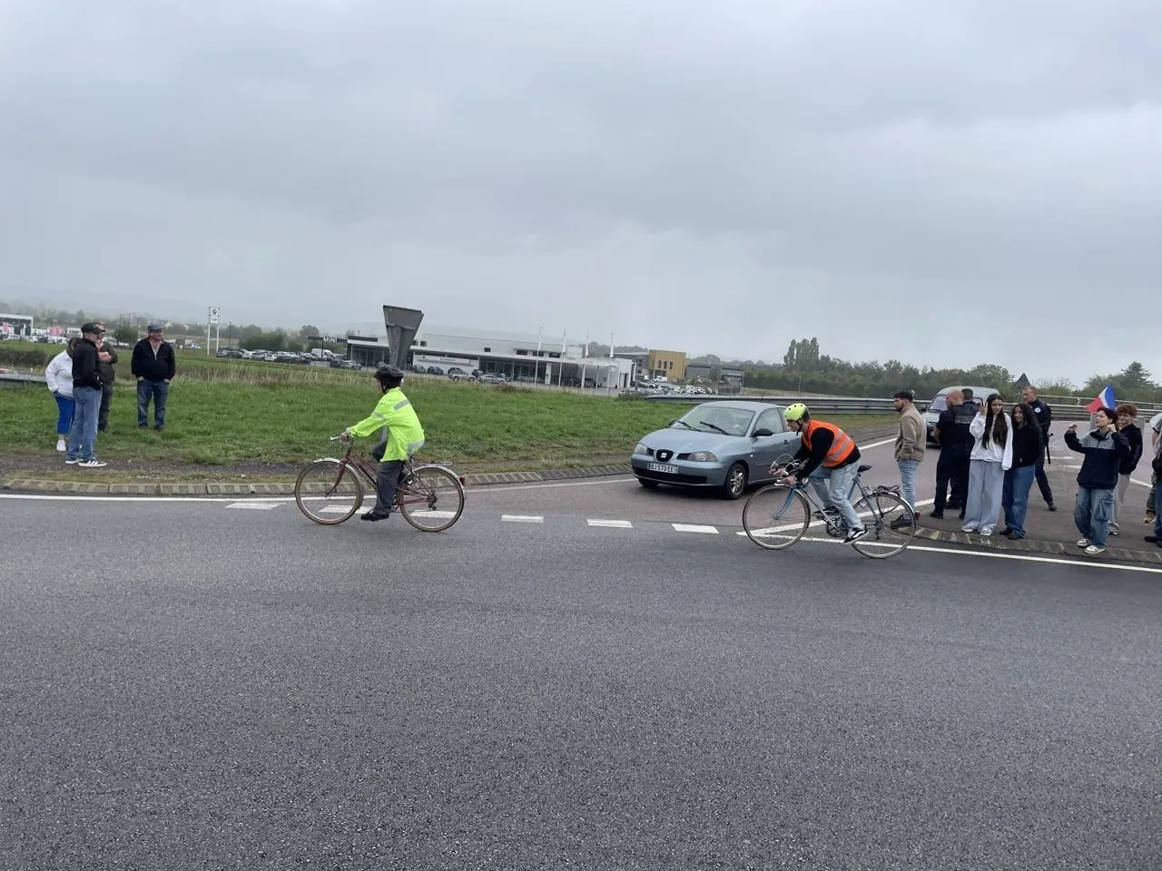 Le rond-point de l’aire de la Dentelle a été occupé toute la journée, mercredi 10 septembre 2025. © Ouest-France