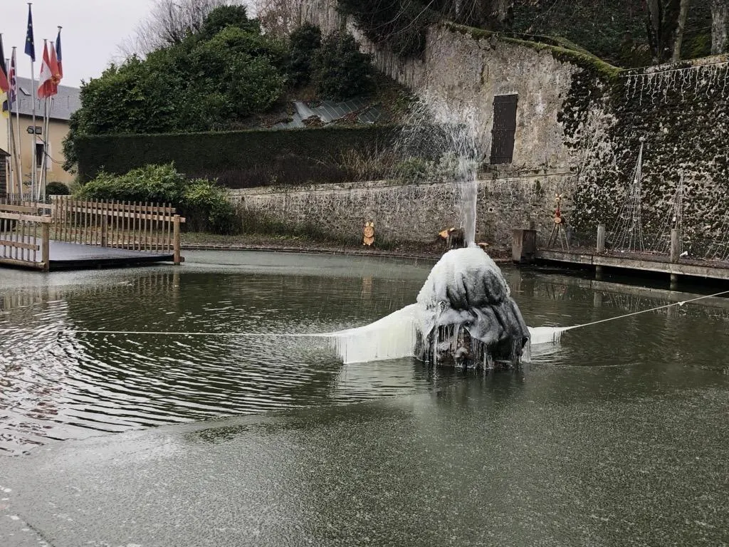 À Bellême, une belle fontaine semi-gelée avec le froid. Ouest-France