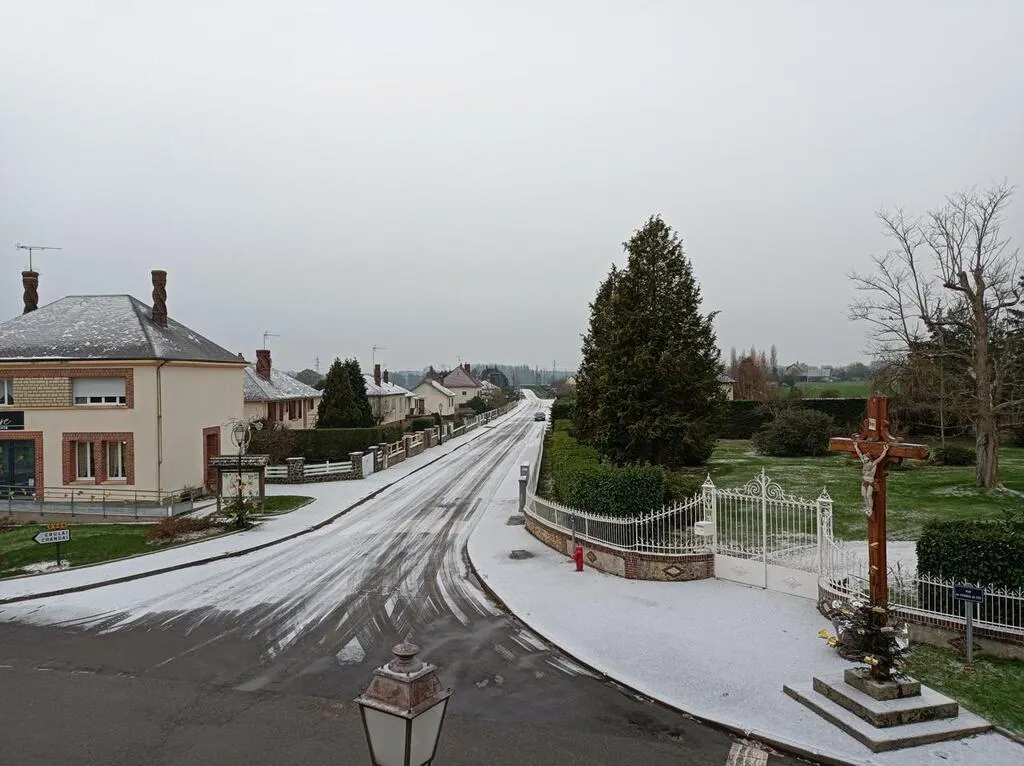 Une fine pellicule de neige a recouvert les trottoirs de Saint-Ouen-sur-Iton (Orne), ce mercredi 14 décembre 2022. © Ouest-France