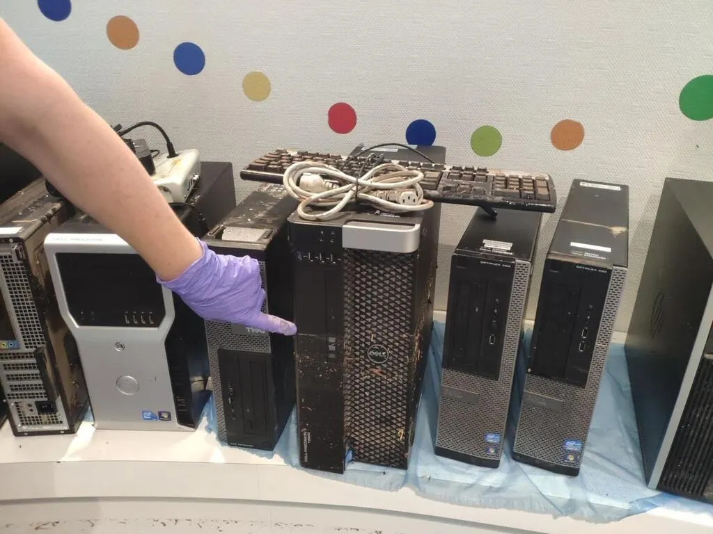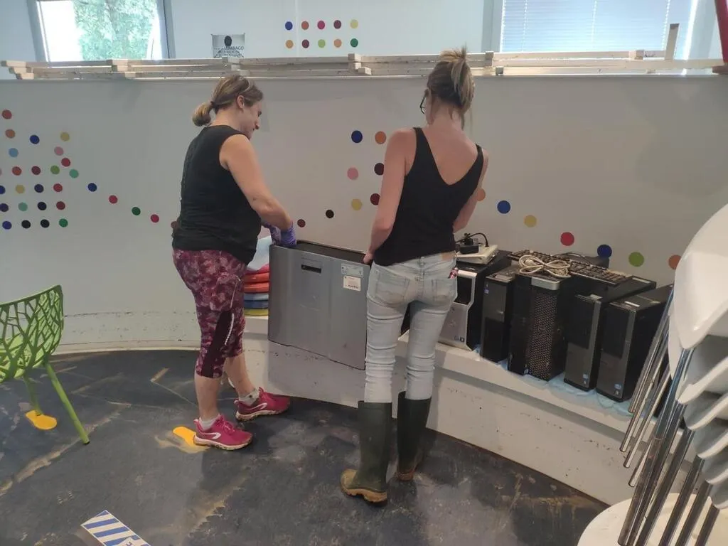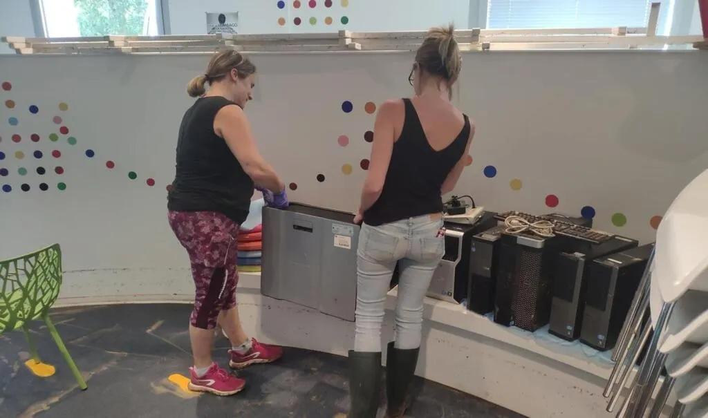 Devant le service, une grande benne a été disposée. Les employés enchaînent les allers retours pour jeter tout ce qui est hors d’usage. « On a mis en hauteur tout ce qu’on a pu : les dossiers de patients, les fournitures… Mais beaucoup de choses sont mortes », indique Aurélie. « C’est notre outil de travail, ça fait forcément mal au cœur », lâche sa collègue Sylvie, elle aussi responsable du secrétariat.