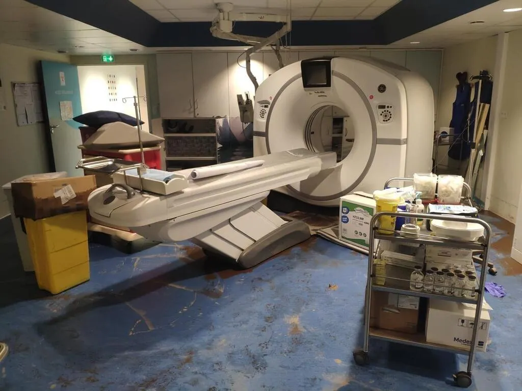Le scanner a, lui aussi, été touché. Des techniciens devaient passer hier 12 ou aujourd’hui pour tester les machines, voir si elles fonctionnent encore. © Ouest-France