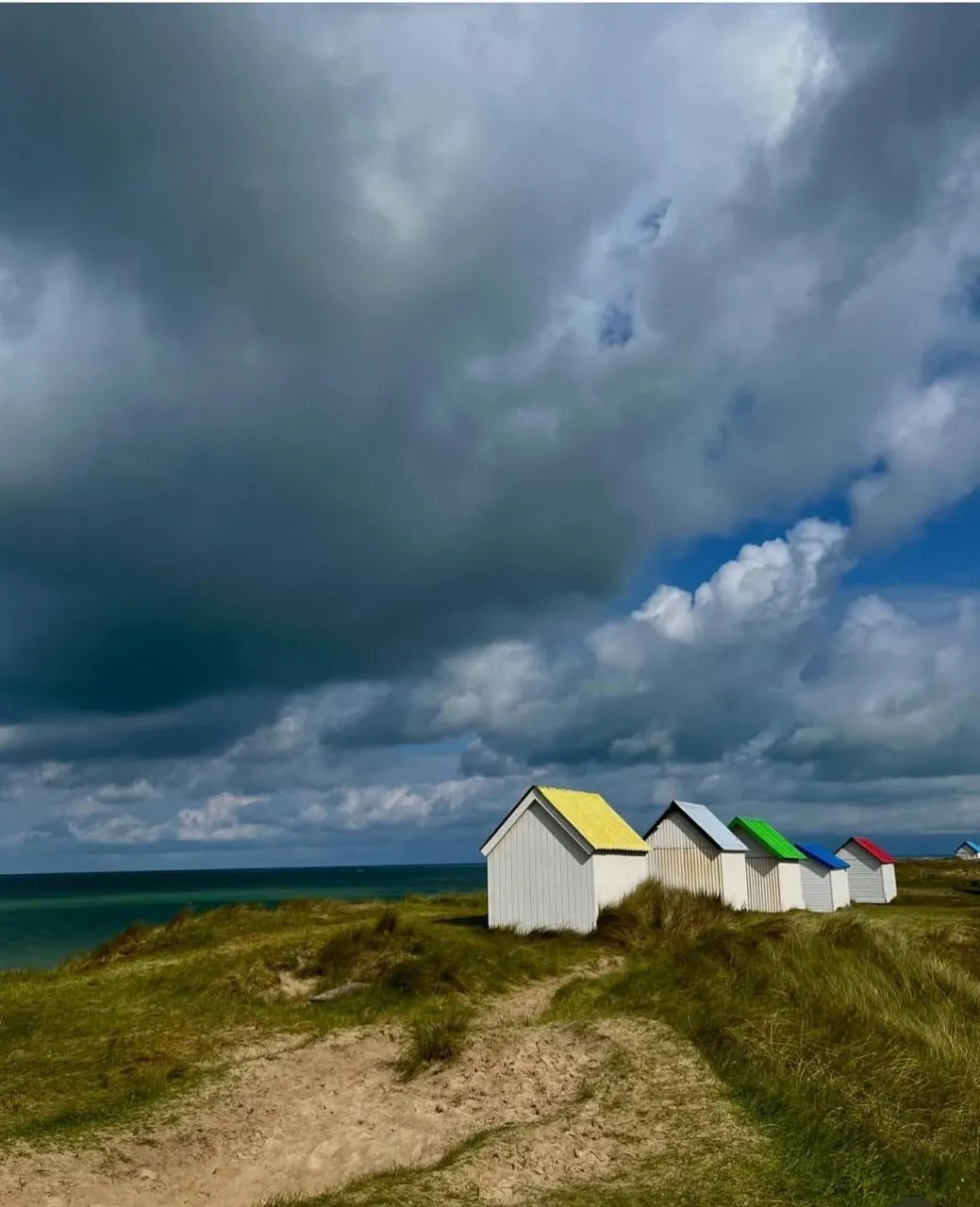 Les célèbres cabines aux toits de couleur de Gouville-sur-Mer (Manche) prennent du relief sous un ciel orageux capté par @emmyld.studio, le 13 juillet. © @emmyld.studio