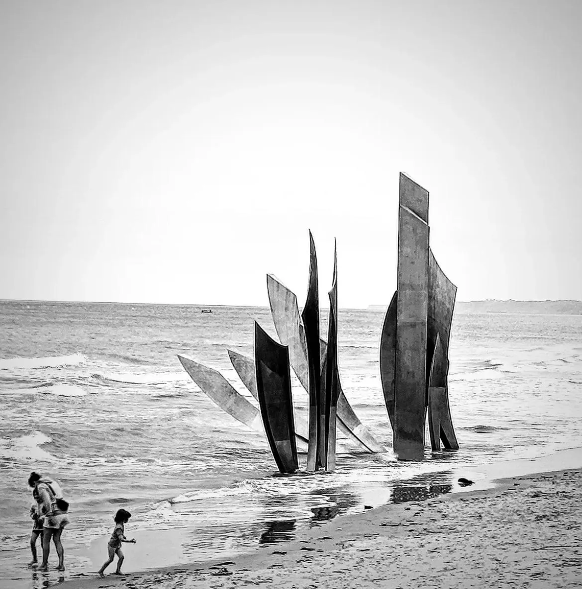 Très sensible prise de vue du monument « Les Braves », signé Anilore Banon, sur la plage de Saint-Laurent-sur-Mer. Lors du D-Day, le 6 juin 1944, cette plage avec celles de Colleville-sur-Mer et de Vierville-sur-Mer ont été appelées Omaha Beach. @christophe_ingrand a capté ce beau moment, le 12 août. @christophe_ingrand