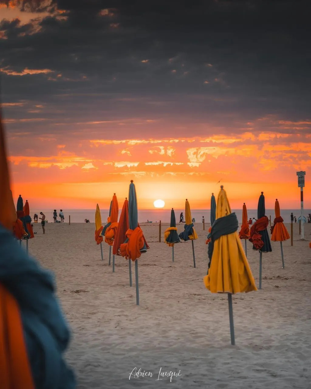 Les parasols de Deauville (Calvados) qui replient leur corolle de toile au soleil couchant. Bel instant capté par Adrien Lauqué @adrien.lauque, le 31 juillet. @adrien.lauque