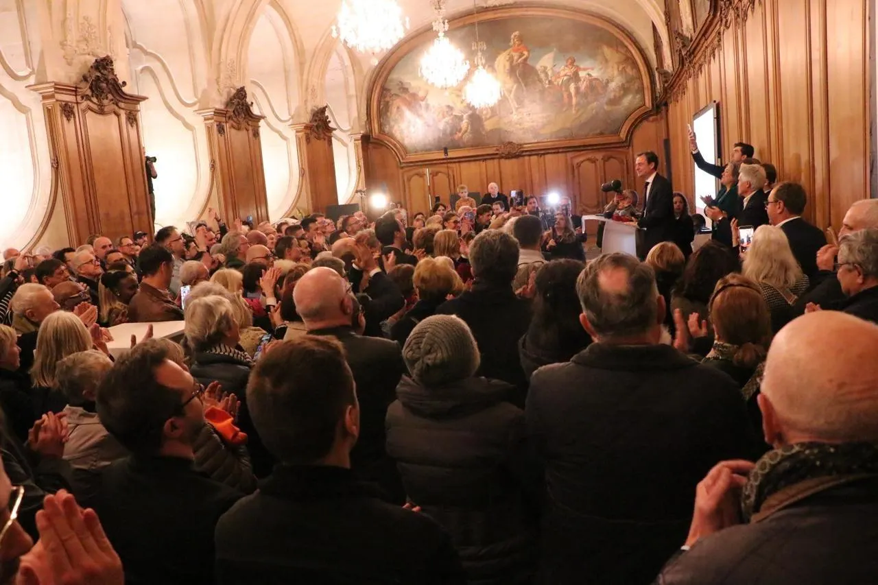 L’hôtel de ville était plein, notamment de public venu féliciter le maire sortant de Caen (Calvados) Aristide Olivier, dont la liste est arrivée en tête du second tour des élections municipales, dimanche 22 mars 2026. Ouest-France