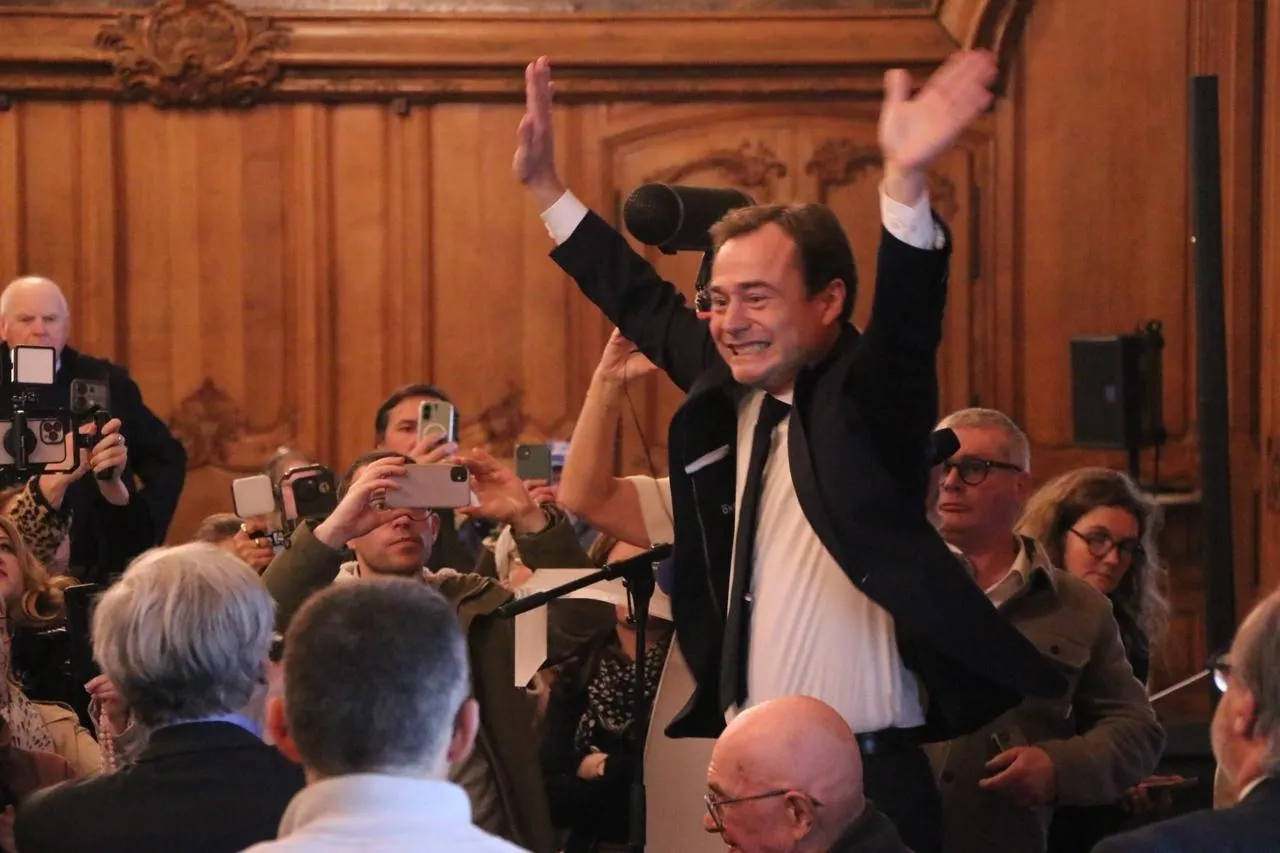 Les pouces levés, Aristide Olivier, jubilant au soir de sa victoire, dimanche 22 mars 2026, à Caen. Ouest-France