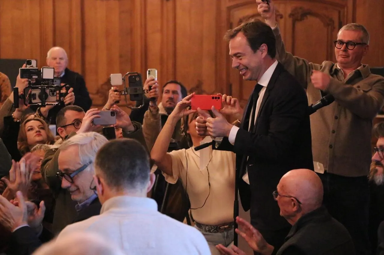 Le plein de selfies, après un discours de victoire plein d’émotion à l’hôtel de ville pour Aristide Olivier, maire sortant de Caen, vainqueur du second tour des élections municipales le dimanche 22 mars 2026. Ouest-France