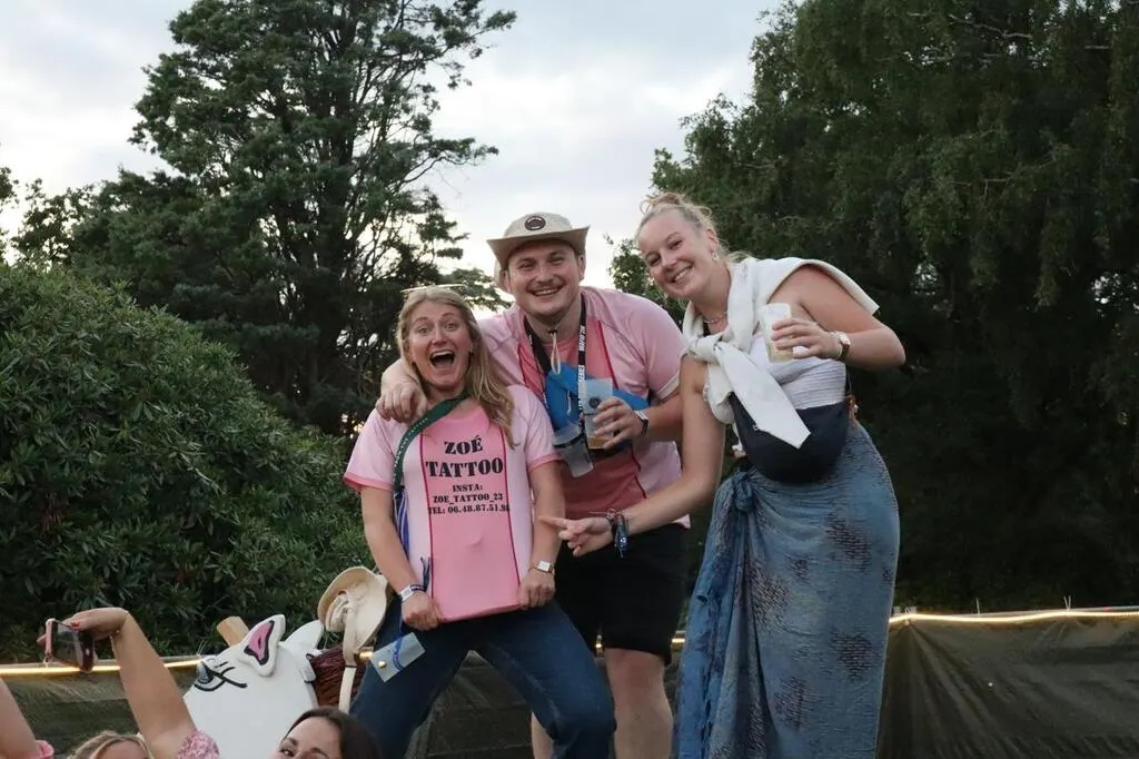 Trois festivaliers s’ambiancent au Bichiottes lors du premier soir du festival des Bichoiseries, vendredi 27 juin 2025. Ouest-France