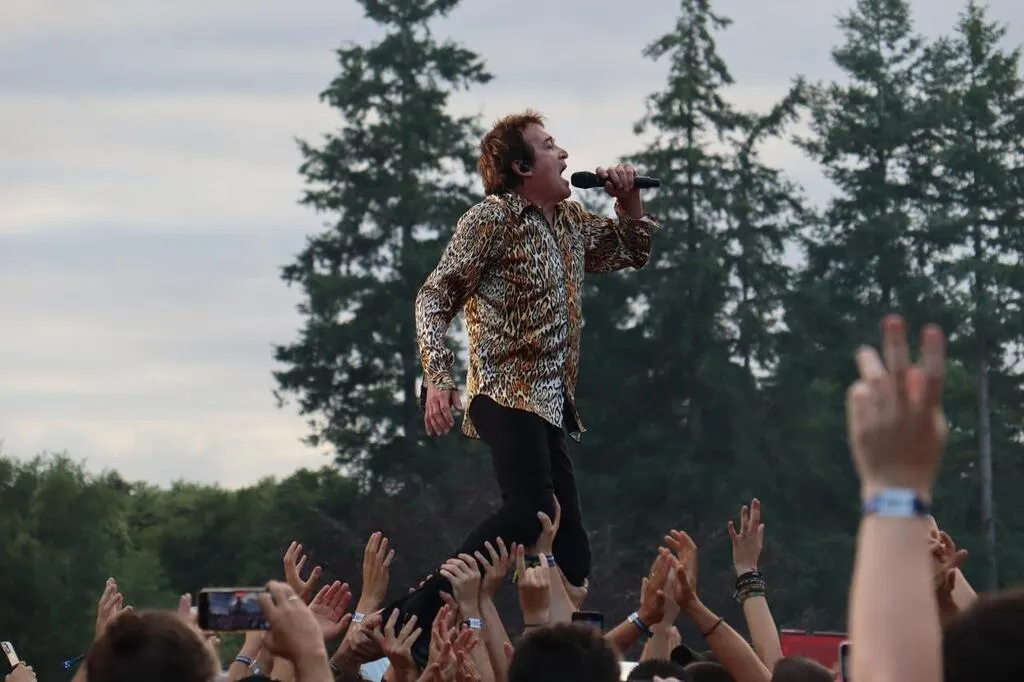 Cali s’est jeté dans le public vendredi 27 juin 2025 aux Bichoiseries à Cerisy-Belle-Étoile, dans l’Orne. © Ouest-France