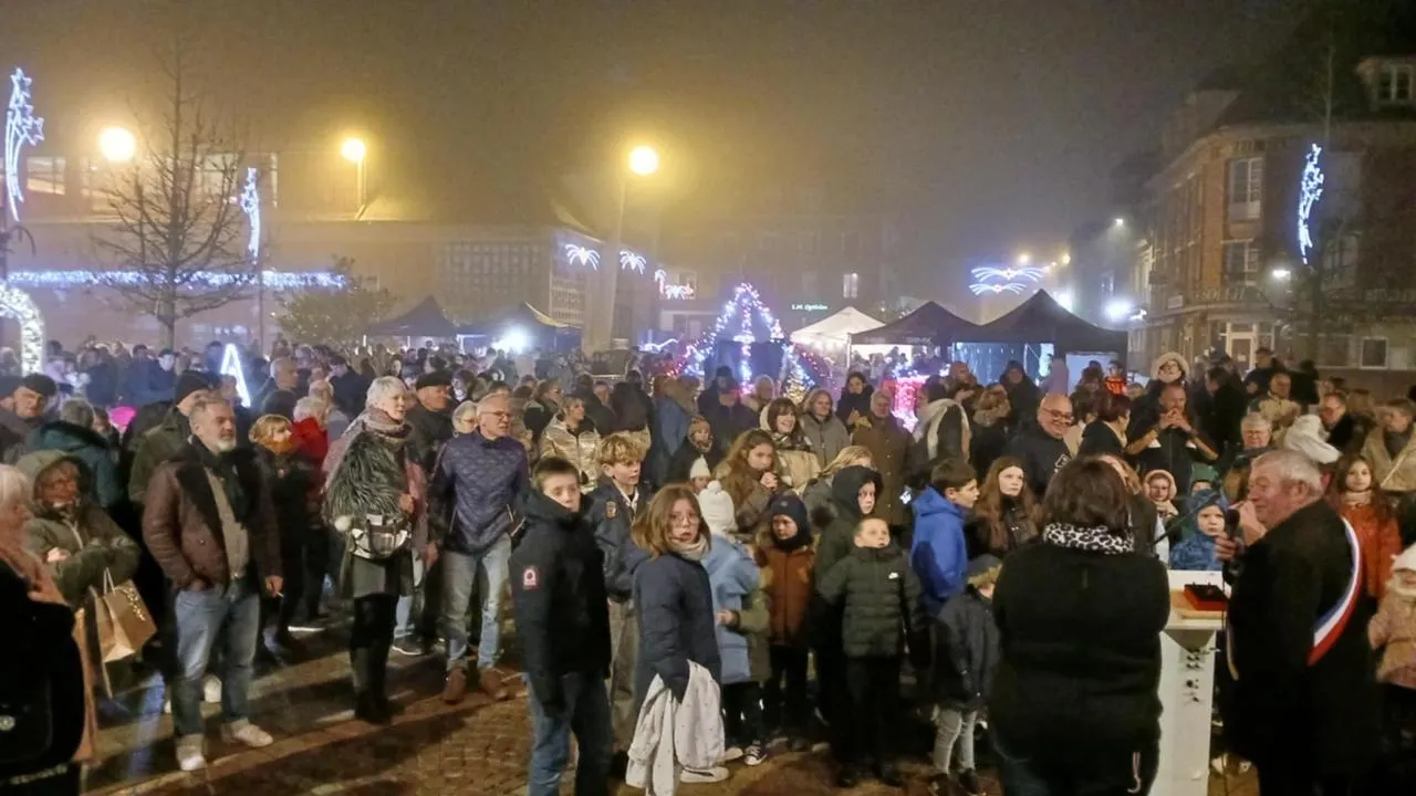 Il y en avait du monde sur la place de Mackau de Vimoutiers (Orne), vendredi 28 novembre 2025, pour assister à la soirée de lancement des festivités de Noël.