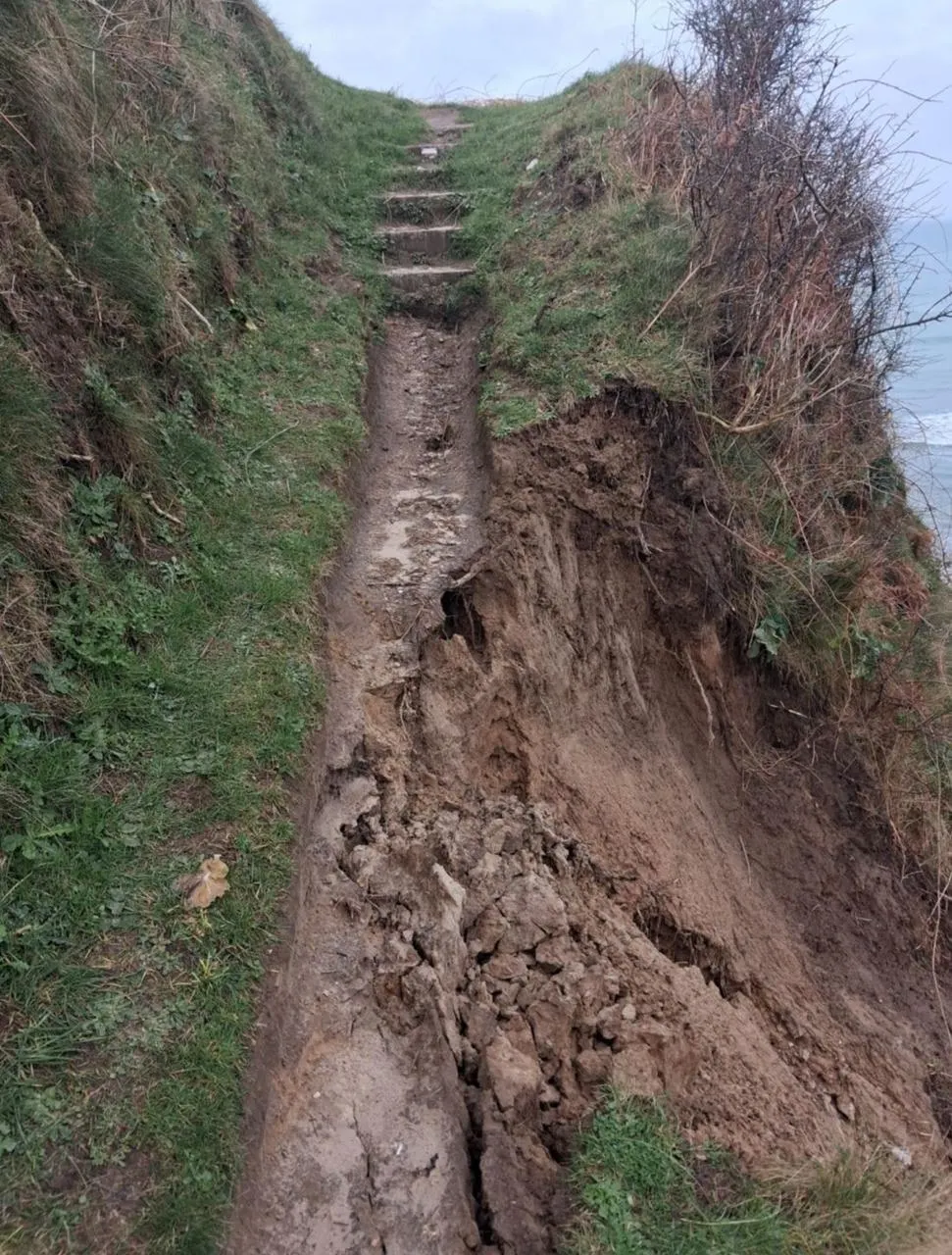 Éboulement de terrain entre les deux Valleuses des Loges et Bénouville, le long du GR21. © Facebook Municipalité des Loges