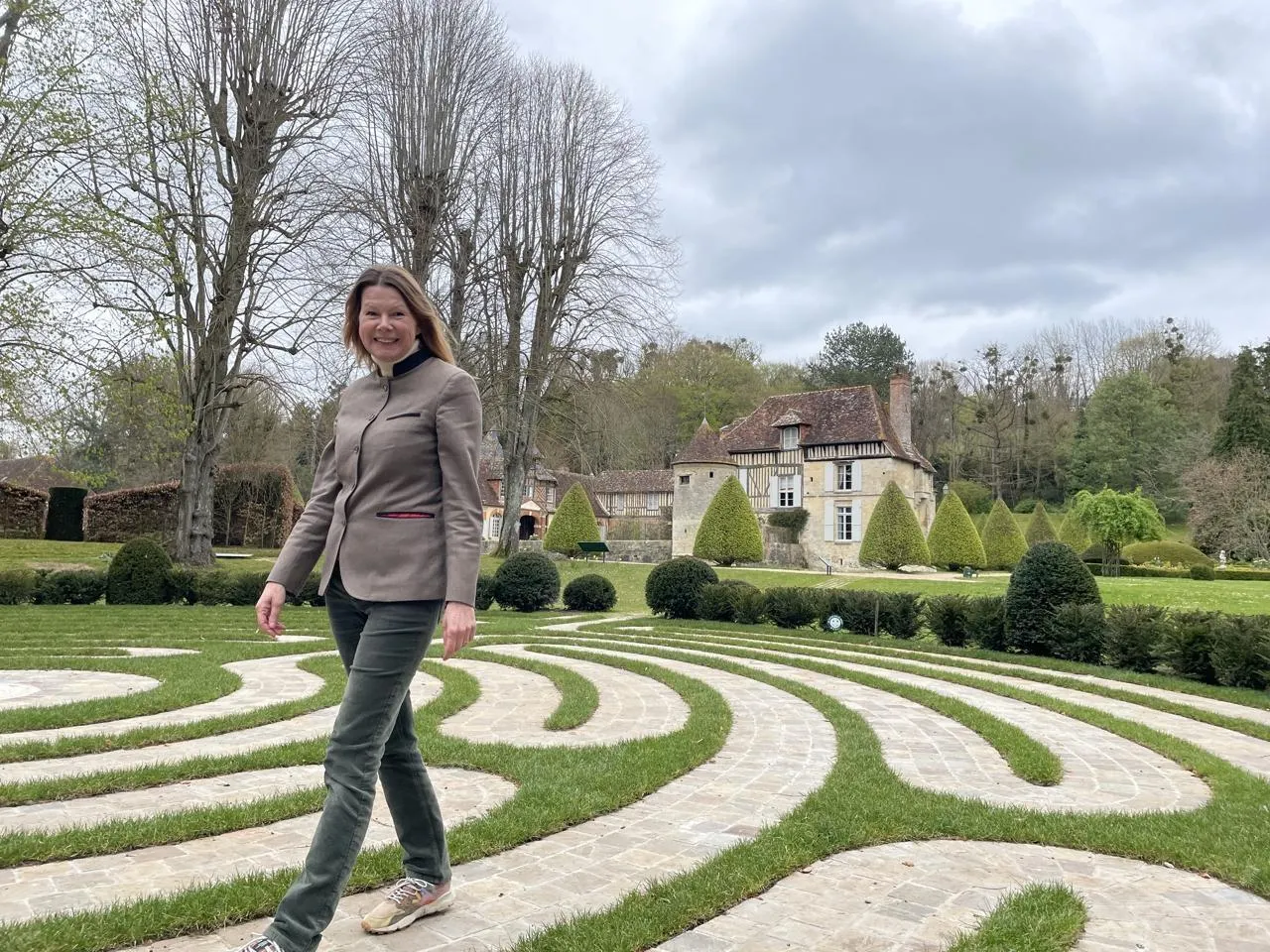 Johanna Wistrom Monnier, copropriétaire du château, dans le nouveau jardin du labyrinthe de méditation. © Ouest-France