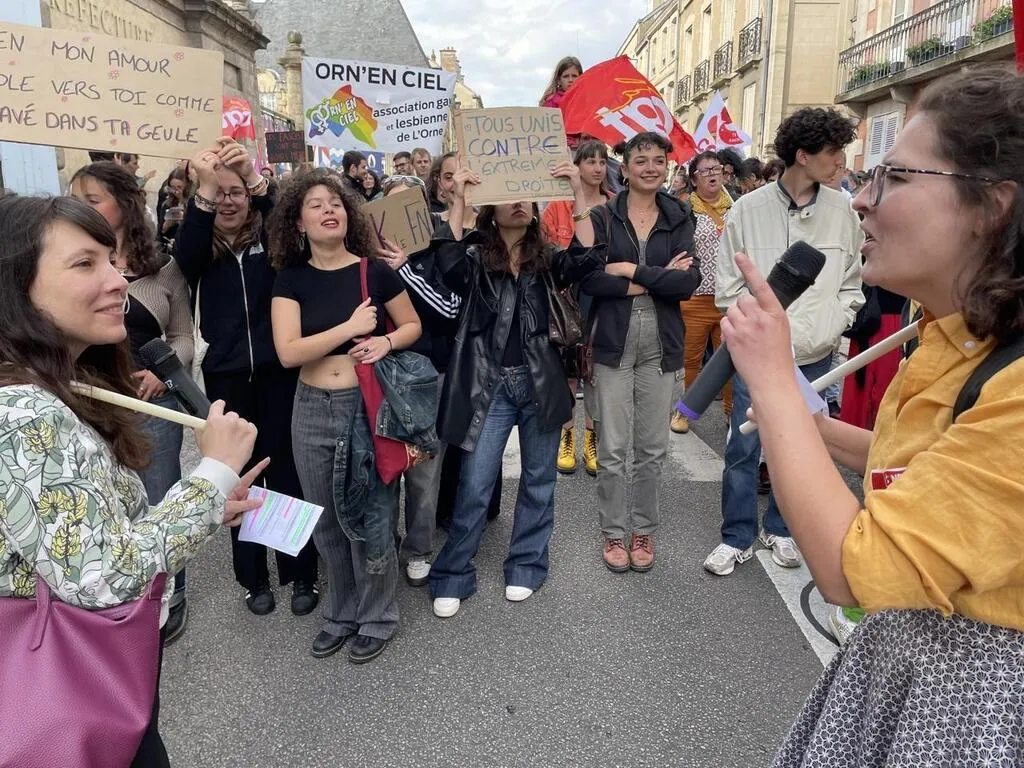 « La jeunesse emmerde (toujours) le Front national », et elle l’a fait savoir dans les rues d’Alençon (Orne). Deux cents personnes ont participé à la manifestation contre l’extrême droite, mercredi 12 juin 2024 en début de soirée. Parmi elles, un nombre non négligeable d’adolescents. Ils n’ont pas encore l’âge de voter, mais déjà une conscience politique aiguisée.