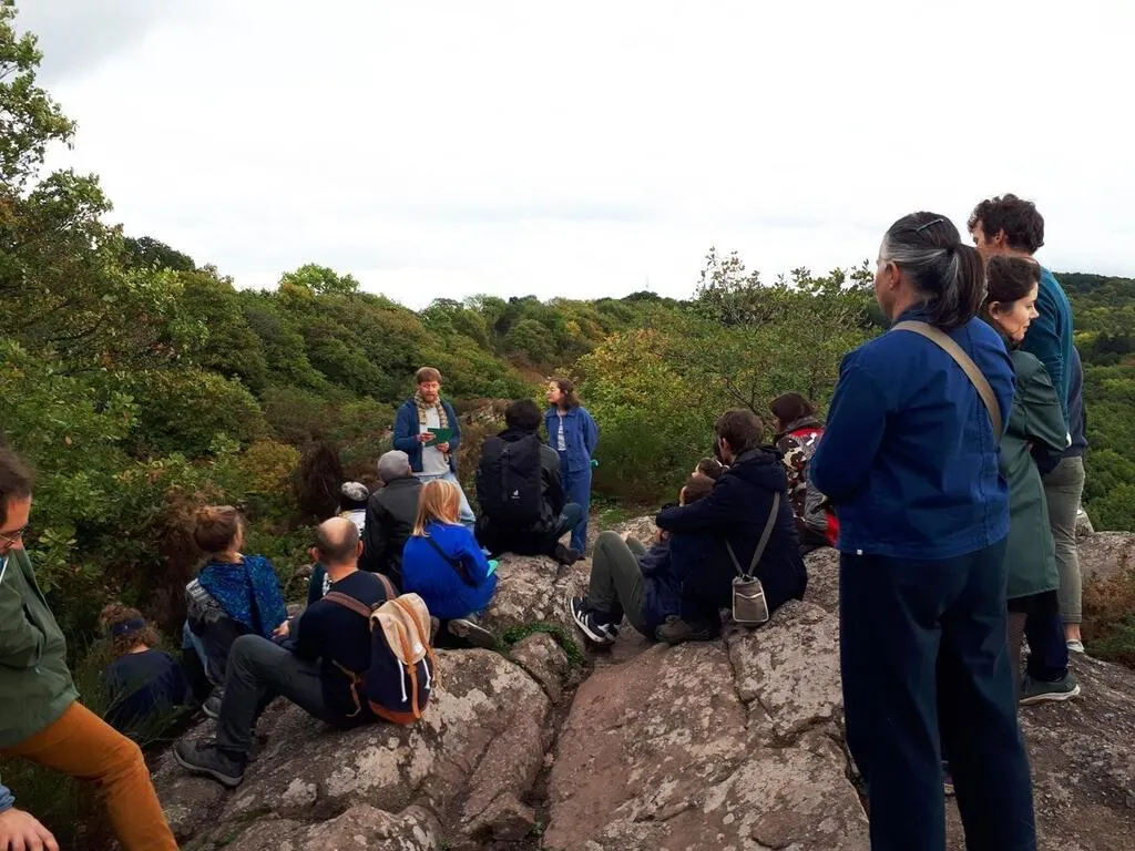 Restitution sous forme de balade à Roche d’Oëtre. Boris et Camille, face au public. © CPIE Collines Normandes