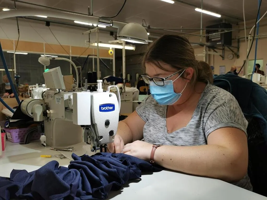 Une couturière de Kiplay, une entreprise basée à Saint-Pierre-d’Entremont, dans l’Orne, travaille à la confection de masques. ? © Archives Ouest-France