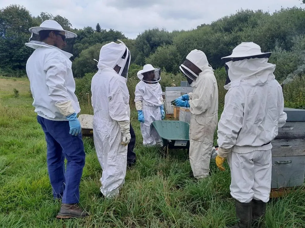 En 2023, le rucher-école du Bocage a rassemblé aux Tourailles (Orne) un groupe de Huit élèves passionnés. © DR