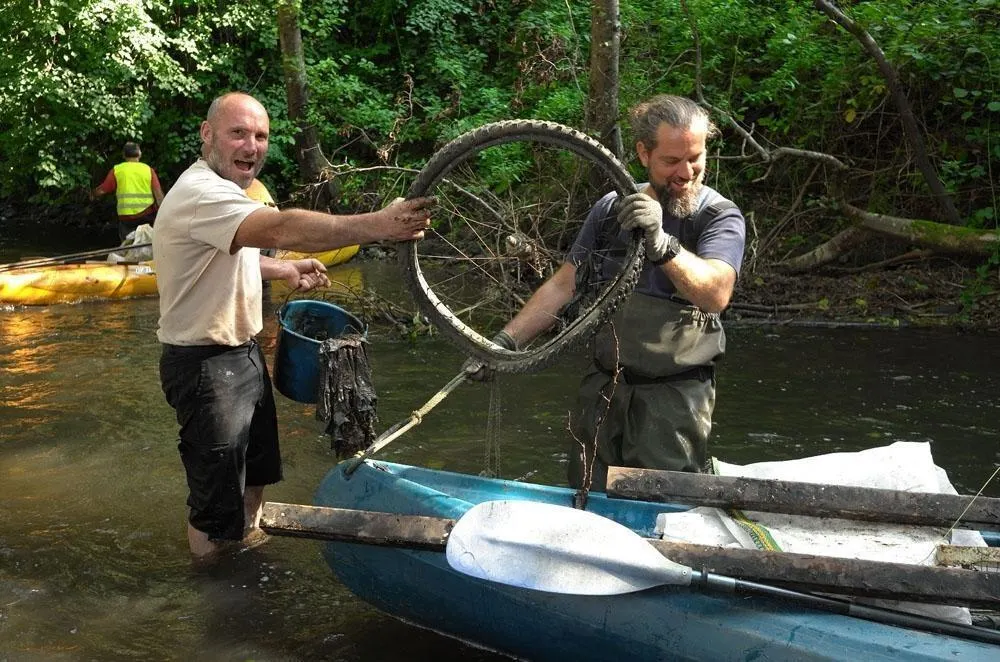Journée mondiale de nettoyage de notre planète, édition 2024, au Pont-Erambourg à Saint-Pierre-du-Regard. Deux canoës ont été utilisés pour ramasser les déchets. © Flers Agglo