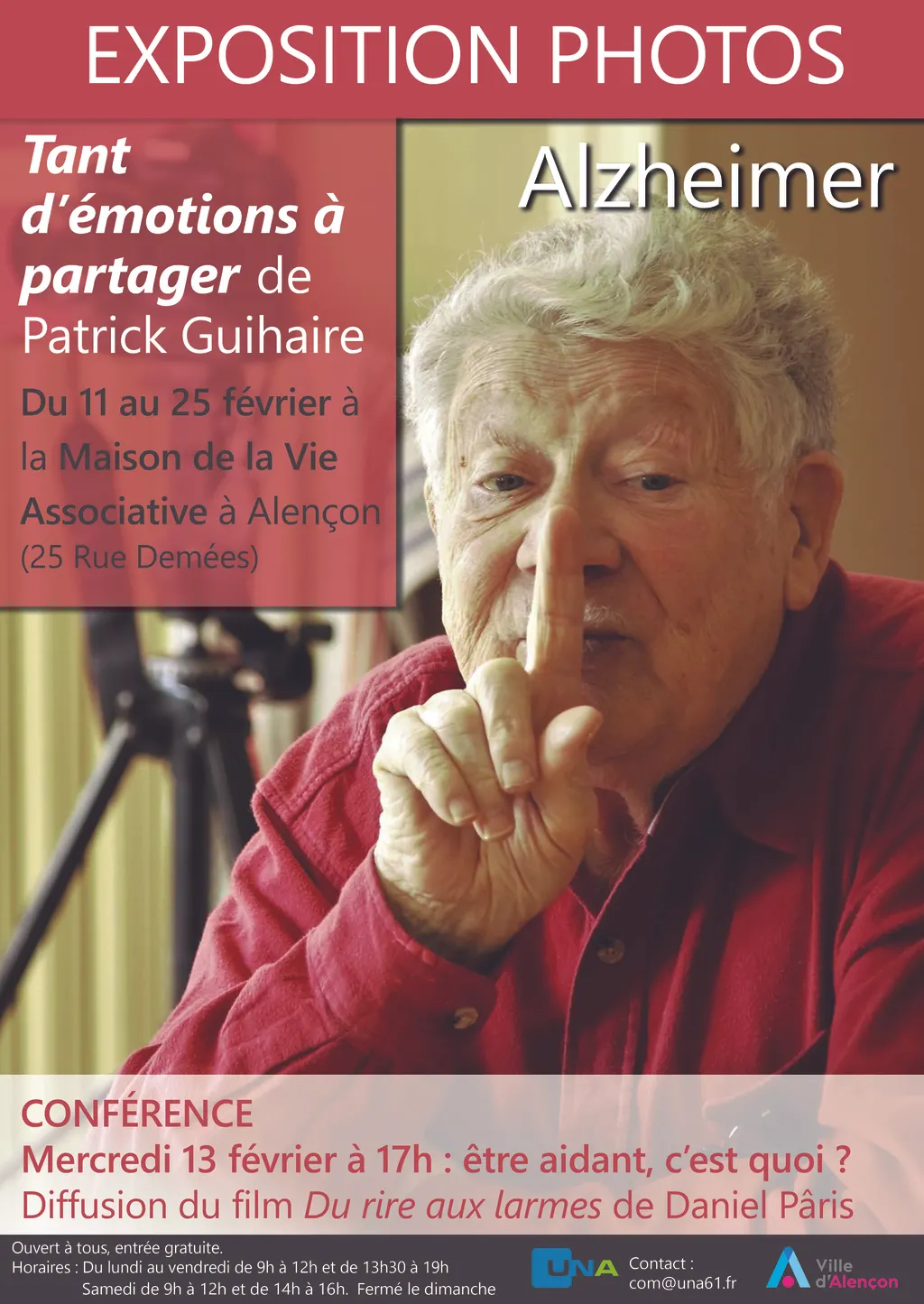 Du 11 au 25 février a lieu l’exposition « Tant d’émotions à partager » à la Maison de la Vie Associative d’Alençon. Patrick Guihaire, photographe et Daniel Paris, réalisateur du film, ont su saisir les émotions des malades d’Alzheimer.