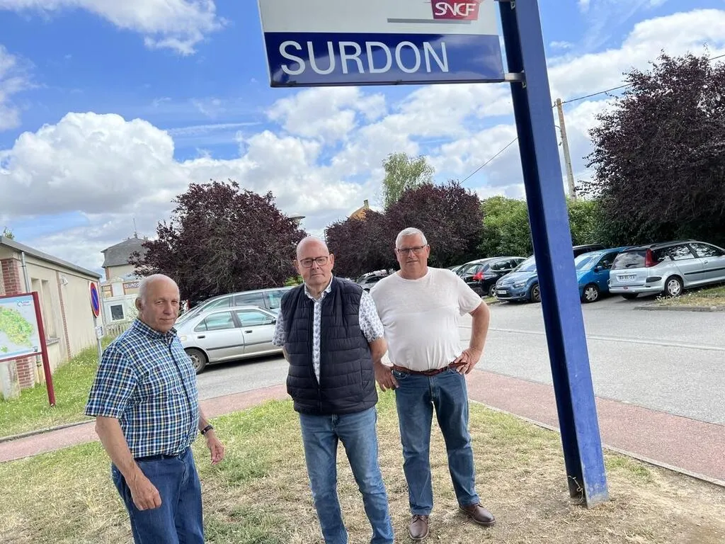 Serge Quellier, maire du Château d’Almenêches, Jean-Pierre Fontaine, président de la CDC des Sources de l’Orne et Eric Grivois, 1er adjoint du Château d’Almenêches, veulent un parking pour la gare SNCF de Surdon. © Ouest-France