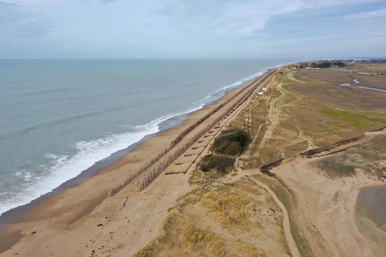Le trait de côte est menacé à Blainville-sur-Mer, dans la Manche, notamment sur la plage de Gonneville. © Photo : Thomas Brégardis / Ouest-France