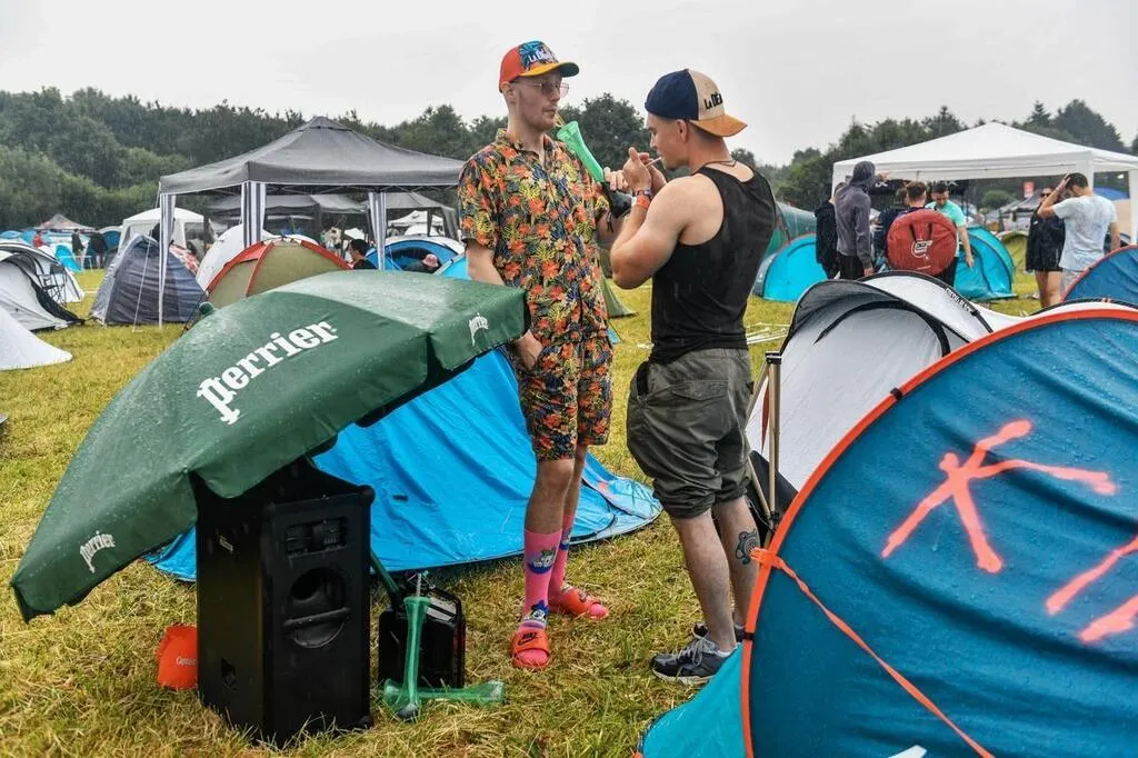 À peine arrivés, les festivaliers d’Art Sonic, à Briouze, dans l’Orne, se donnent déjà à fond, malgré une météo pas forcément très favorable. Si certains jouent au beer-pong, d’autres préfèrent se laisser coiffer…