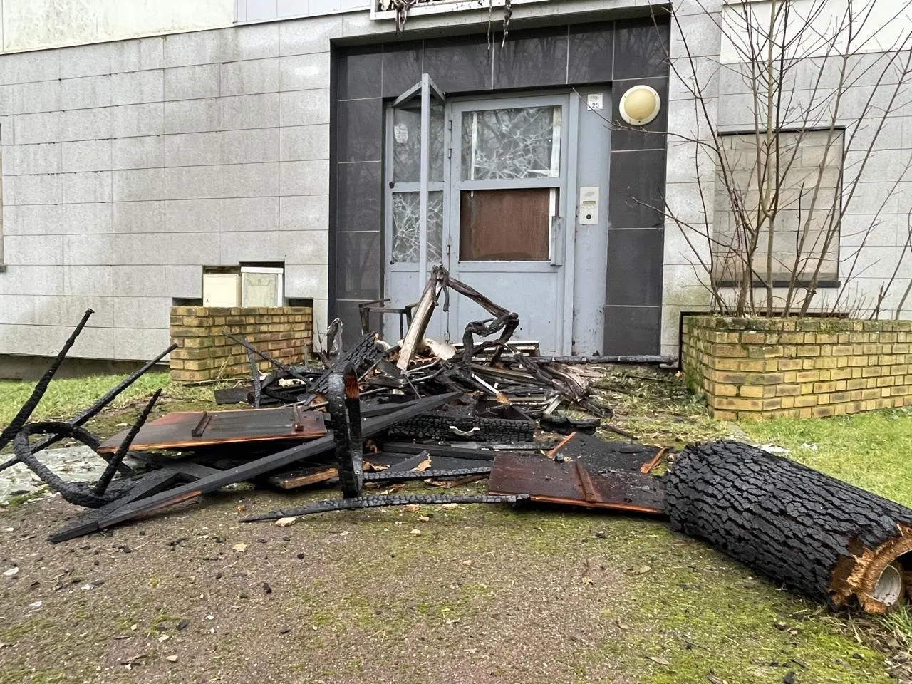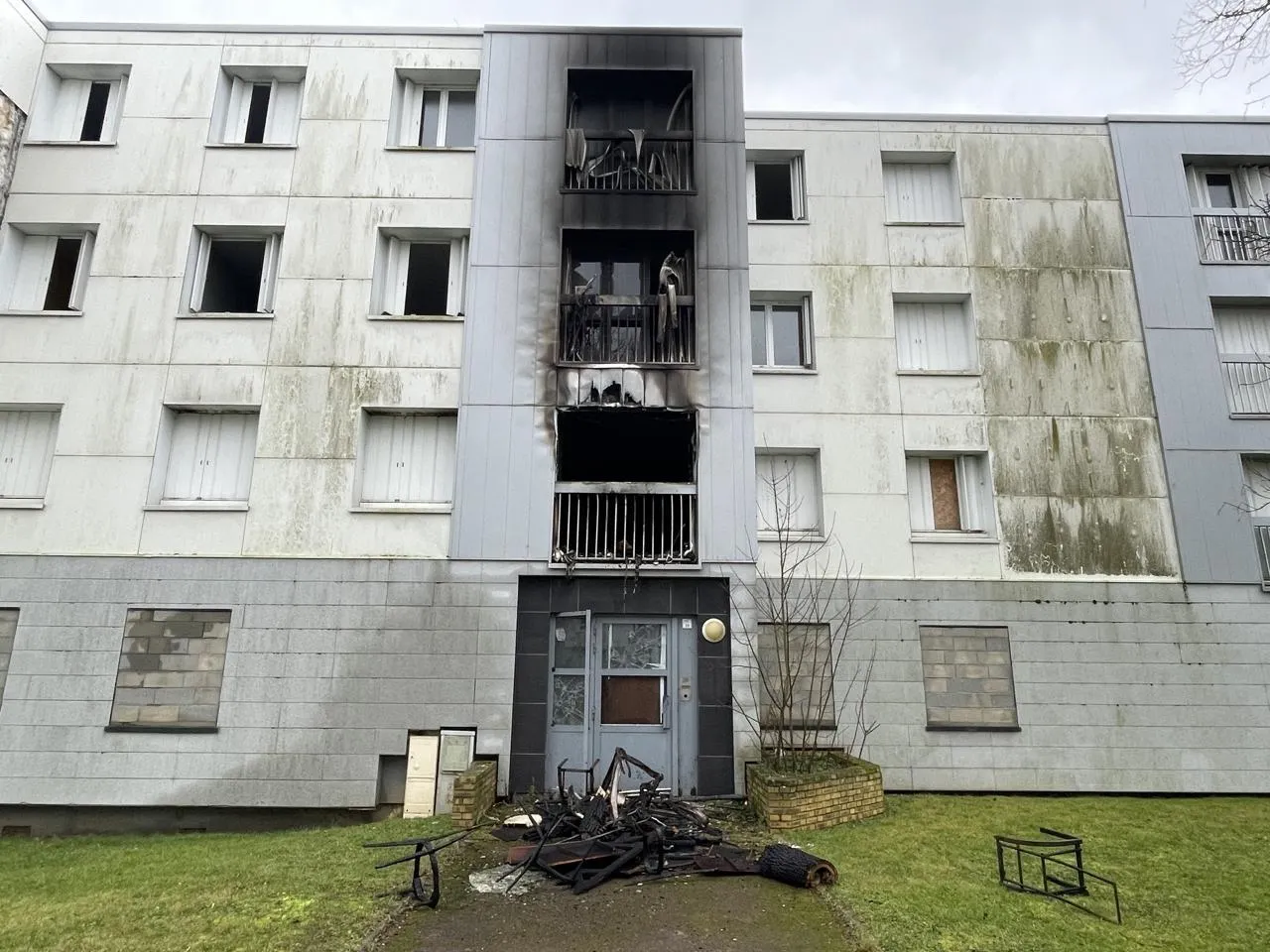Du mobilier calciné est toujours visible à l’entrée du bâtiment, ce lundi 19 janvier 2026. Ouest-France