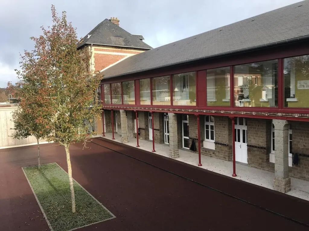 La nouvelle verrière et la cour rénovée de l’école Sévigné Paul-Bert de Flers, dans l’Orne. © Ouest-France