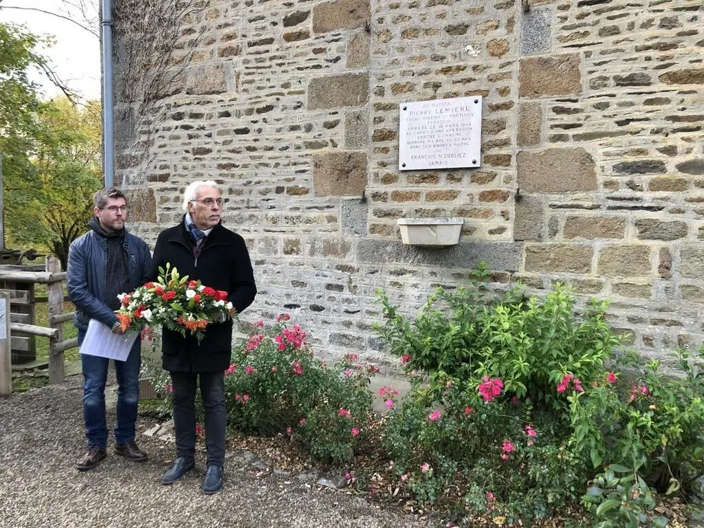 Une quarantaine de personnes étaient réunies, ce samedi 13 novembre 2021, au cimetière de Saint-Georges-des-Groseillers et au moulin du château de Flers pour rendre hommage aux résistants Henri Véniard et Pierre Lemière et déposer des bouquets de fleurs.