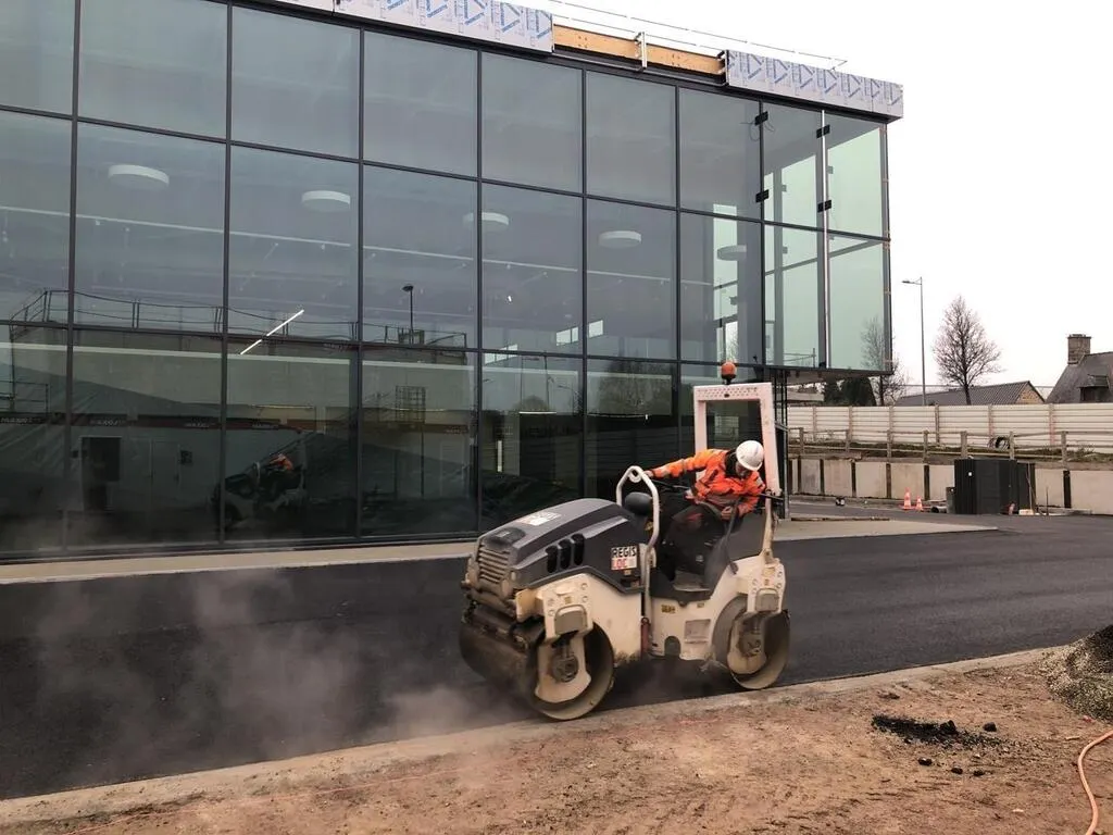 À un peu plus de deux mois de l’ouverture, prévue le mercredi 23 février 2022, les ouvriers s’activent. En ce vendredi 17 décembre 2021, c’est une odeur de bitume qui flotte dans l’air, tandis qu’un rouleau compresseur se charge d’aplanir les futures voies de circulation. Par jour, entre 35 et 40 personnes se relaient pour mener à bien les travaux.