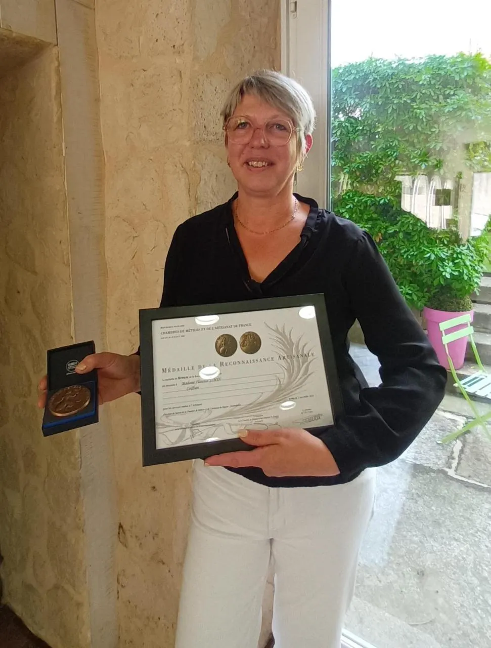 Une récompense à laquelle Florence Sibon ne s’attendait pas. Elle marque ses trente ans de carrière dans la coiffure. Cette distinction salue notamment son engagement et sa contribution au rayonnement de l’artisanat. La médaille frappée par la Monnaie de Paris s’accompagne d’un diplôme. Elle est gravée au nom de la lauréate et y figurent la déesse Minerve, enseignante des métiers et au revers, l’homme maîtrisant les quatre éléments