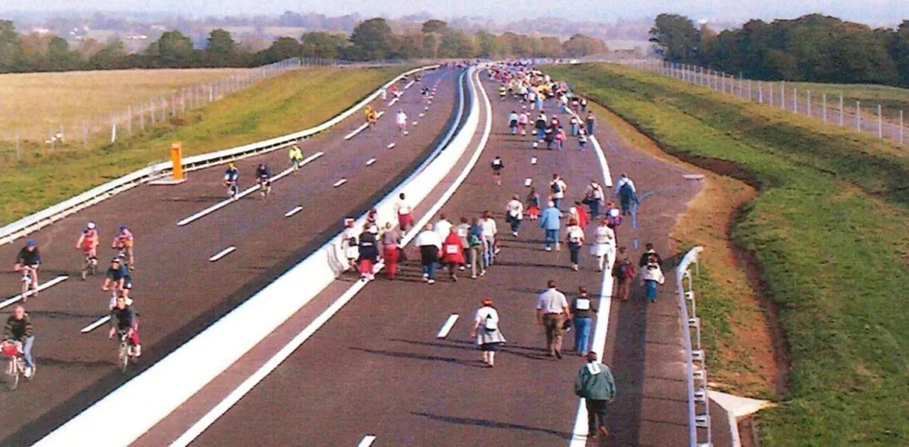 Le 21 octobre 2005, l’autoroute a été envahie par des cyclistes, des marcheurs et des rollers. © Ouest-France