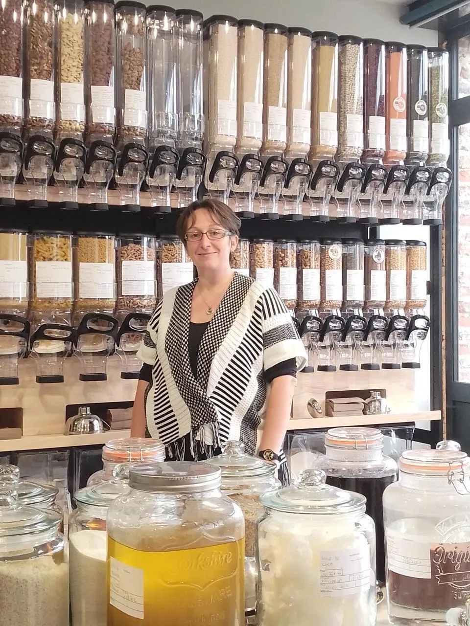 Sandrine est propriétaire de l’épicerie Le Vrac’du coin, à Gacé (Orne).