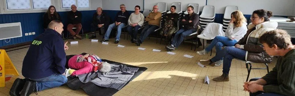 Le formateur, Patrick Leroy, de la Société EFIP, a appris aux participants, les gestes indispensables que tout le monde devrait connaître. Cette formation s’est déroulée sur la journée de 9 h à 17 h (repas du midi offert par Groupama).