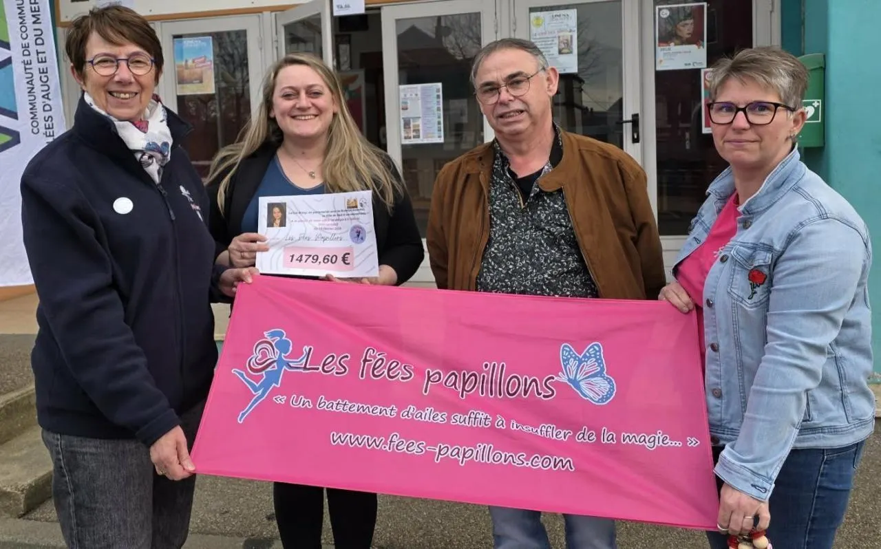 Samedi 14 février, les roulettes gacéennes organisaient un loto « du cÅ“ur » au profit de l’association Les Fées papillons qui Å“uvrent pour le don de moelle osseuse. Mardi, la boucle a été bouclée. Les membres de l’organisation, Mathilde Brunner et Stéphane Dif ont remis un chèque de 1 479 € aux Fées papillons devant la salle des fêtes Le Tahiti. © Ouest-France