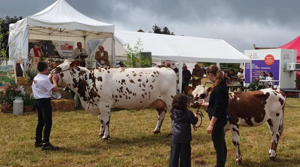 L’établissement de Giel Don Bosco était avec l’équipe de l’exploitation agricole accompagnée de très belles bêtes. Les enfants ont pu profiter des jeux en bois, et Biellette la 2 CV de course de Giel Don Bosco était également exposée. Dans l’après-midi le défilé d’une quinzaine de tracteurs anciens a eu son effet dans le bourg.