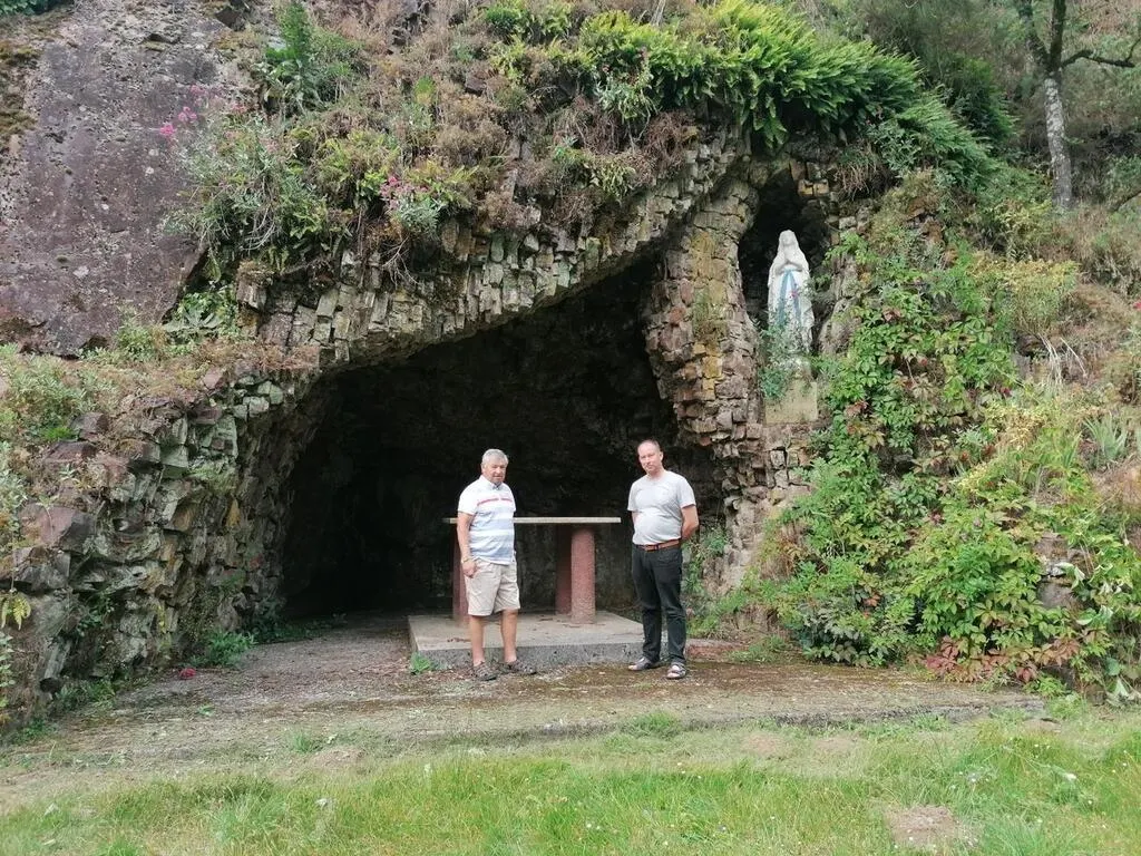 Pierre Collet, président de l’association des anciens élèves et amis de Don Bosco et François Montambault, trésorier, devant la grotte où la messe sera célébrée. © Ouest-France