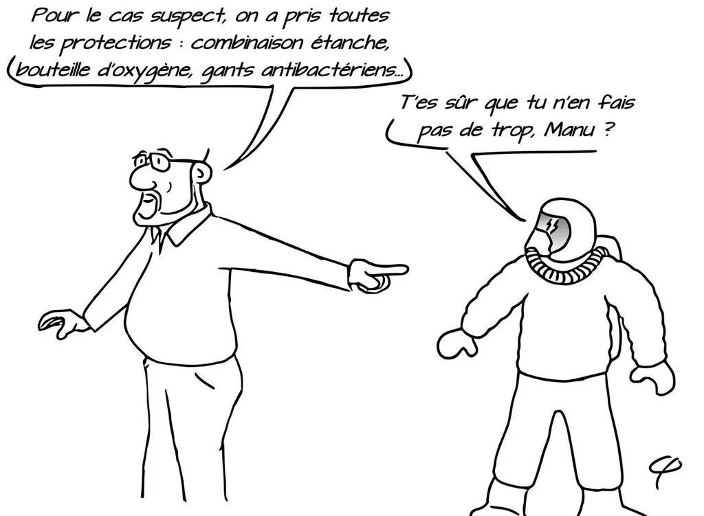 Chaque semaine, le père Christophe Peschet illustre la chronique de Frère Manu. Cette fois, c’est l’épisode le plus inquiétant de la semaine passée qui l’a fait sourire… (Puisqu’il s’est bien terminé !) © Christophe Peschet