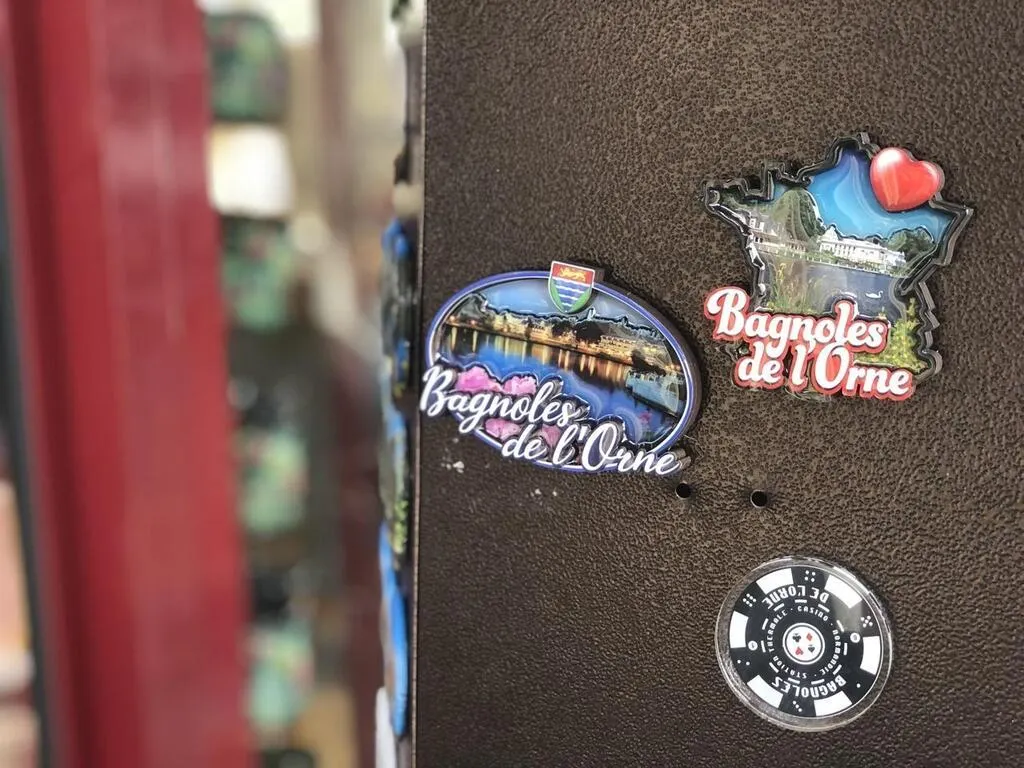 Les boutiques de Bagnoles-de-l’Orne-Normandie (Orne) vendent de nombreux magnets. © Ouest-France