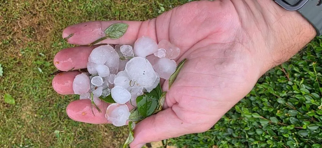 De gros grêlons sont tombés en début de soirée de ce vendredi 13 juin 2025 à Condé-sur-Noireau, dans le Calvados. Ouest-France