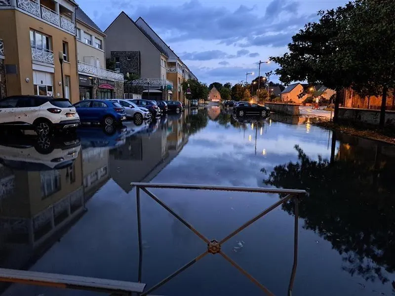 Une rue de Saint-Sylvain (Calvados) sous les eaux après les pluies d’orage du début de soirée de ce vendredi 13 juin 2025. Ouest-France