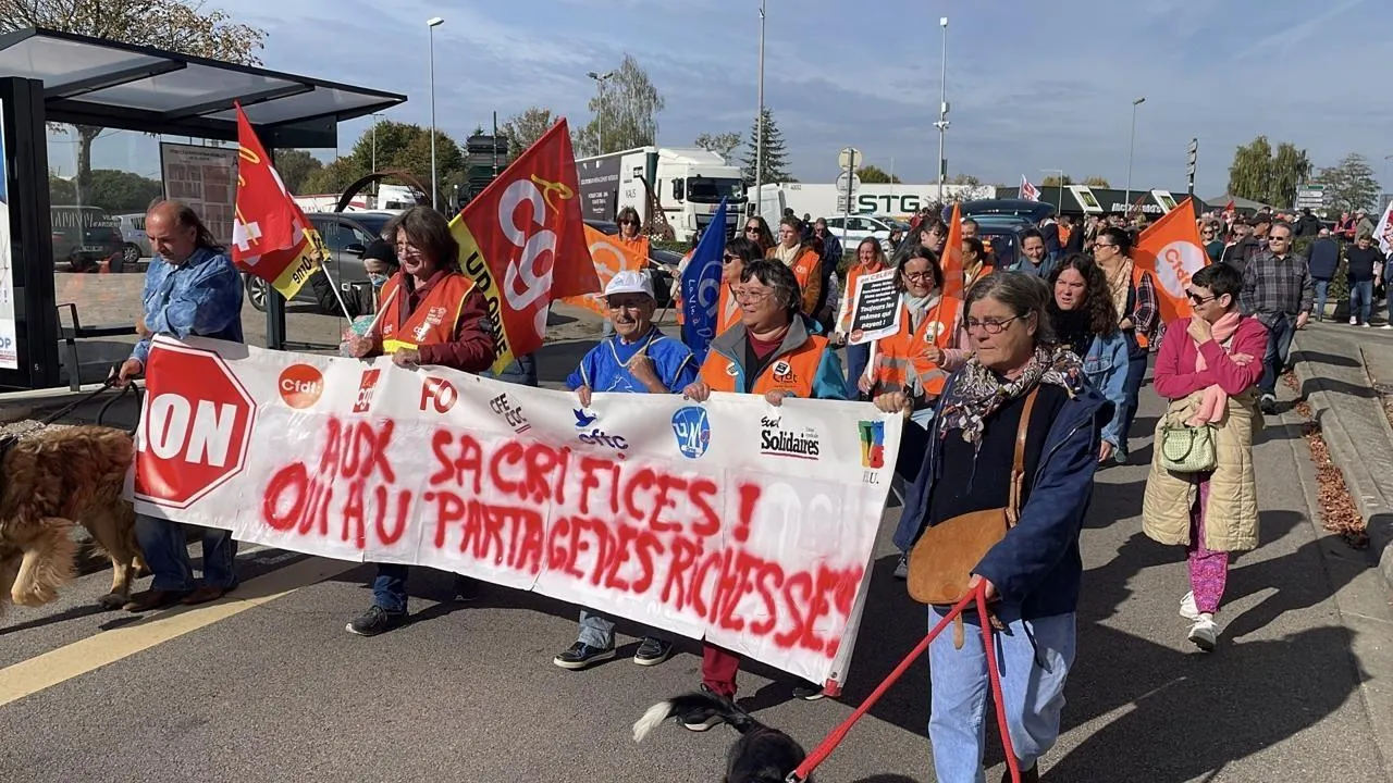 Après une prise de parole syndicale dénonçant « le sacrifice des travailleurs et retraités », le cortège a pris le chemin de la mairie, sillonnant les rues du centre-ville. « Il y avait plus de monde au mouvement Bloquons tout, le 18 septembre, note Jean-Luc Tabesse, de la CGT. Faire grève c’est perdre une journée de salaire, ce n’est pas simple pour les gens ».