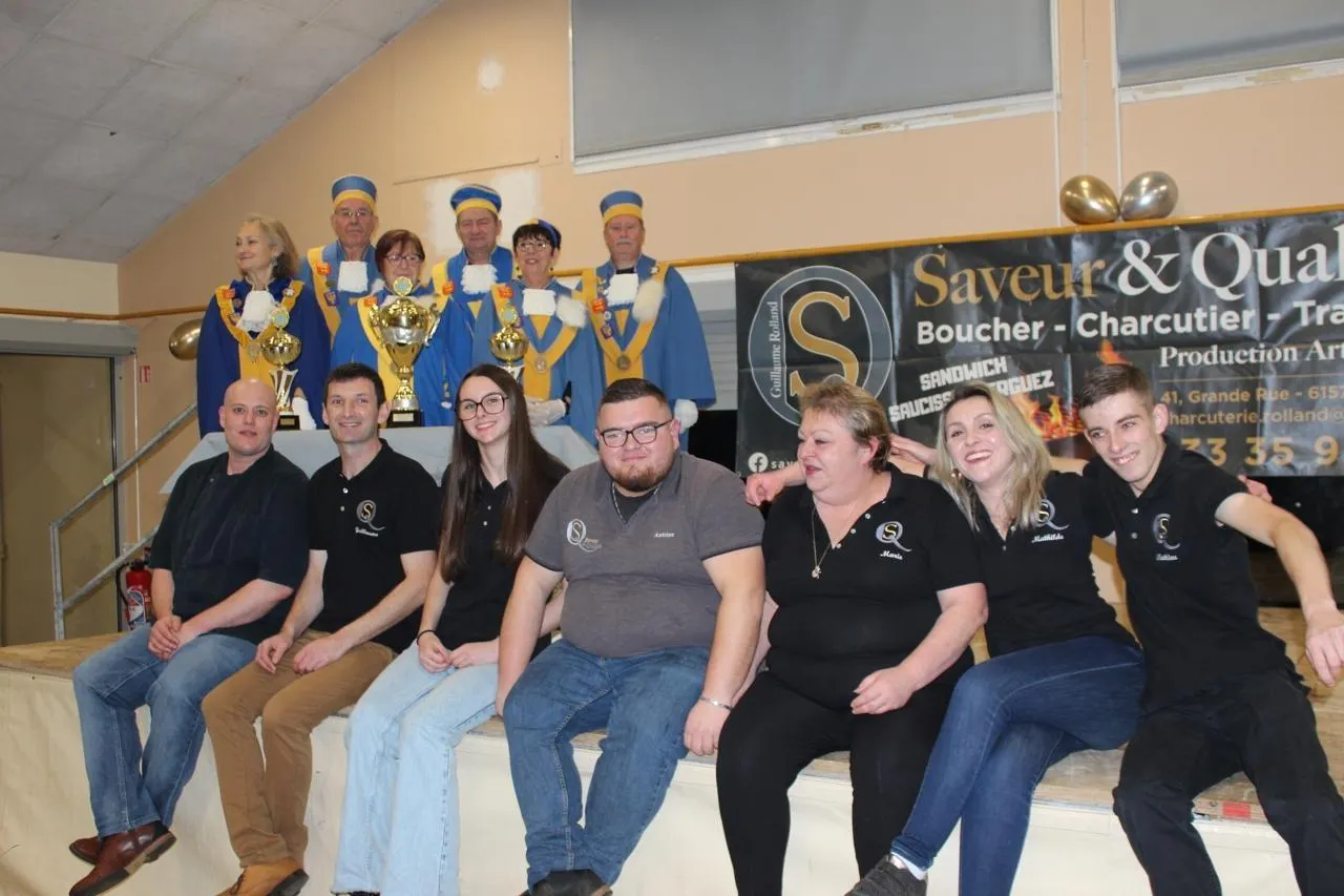 Le charcutier traiteur est un habitué des titres nationaux et internationaux : champion d’Europe du boudin noir 2023, 3e au championnat d’Europe du boudin blanc 2023, il est cette année champion de France de la saucisse grillée. Les trophées remportés par l’équipe de cette entreprise étaient dévoilés en présence de six membres de la Commanderie des fins goustiers d’Alençon, en habits d’apparat.