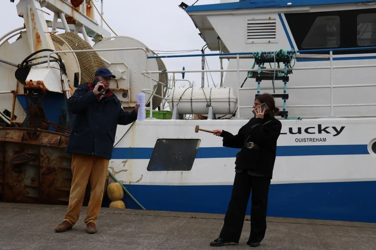Vente aux enchères, inédites, mardi 31 mars 2026 à Ouistreham, un port au nord de Caen (Calvados) : un bateau de pêche, saisi dans le cadre d’un vaste trafic de cocaïne, est parti pour 300 000 €, bien en dessous de sa valeur réelle. © Ouest-France